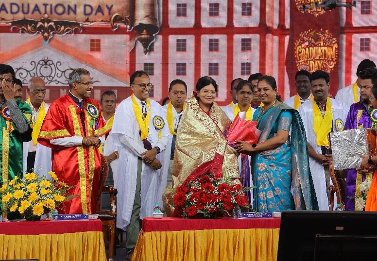 The Graduation Day Address was delivered by Dr. Sindhura Ganapathy, Principal Scientific Advisor Fellow, Office of the Principal Scientific Advisor, Government of India, who shared inspiring insights on the rapid technological transformations shaping the future. He encouraged graduates to remain curious, adaptable, and open to continuous learning, especially in emerging fields such as Artificial Intelligence, quantum computing, and advanced technologies. He emphasized the importance of preparing the mind for change, experimenting with new ideas like prototypes in engineering, and viewing career paths as evolving journeys. He concluded by motivating the graduates to embrace opportunities with confidence and optimism while contributing meaningfully to society.