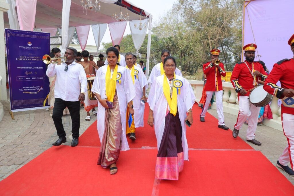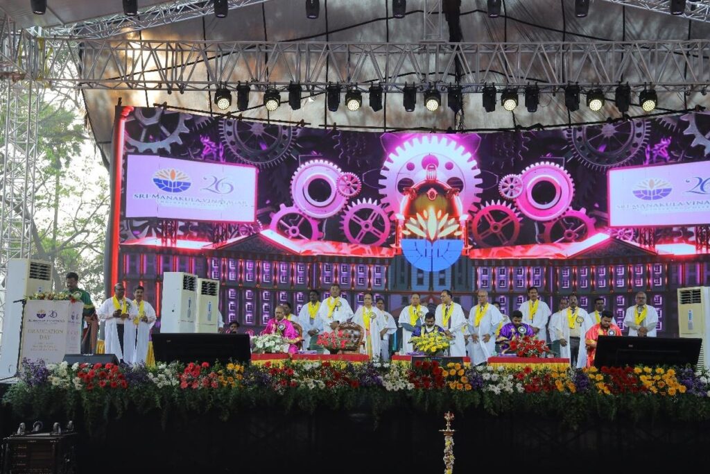 The ceremony continued with Thamizh Thai Vazhthu, paying tribute to the richness of the Tamil language and culture, followed by the SMVEC Anthem, which instilled a deep sense of pride and belonging among the gathering. This was followed by an Audio Visual (AV) presentation that showcased the institution’s achievements, milestones, academic excellence, and the remarkable journey of growth over the years.