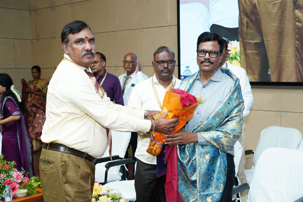 The presidential address was delivered by Shri. M. Dhanasekaran, Chancellor of Takshashila University, Tindivanam, and Chairman & Managing Director of SMVET. In his insightful speech, he illustrated the remarkable evolution of animation and graphics, explaining how processes that once required years of work and thousands of artists can now be achieved effortlessly with the help of Artificial Intelligence. He emphasized that AI has become a powerful tool that simplifies, enhances, and accelerates creative and educational processes. Highlighting its growing role in education, he encouraged exploring innovative ways to integrate AI into teaching, learning, and training to shape a smarter and more efficient academic environment.