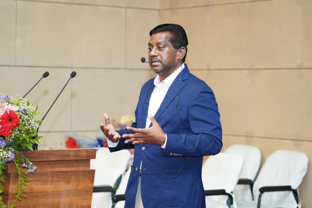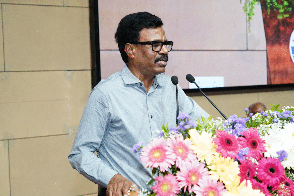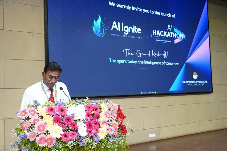 The felicitation address was delivered by Shri. D. Rajarajan, Treasurer of SMVET, He extended a warm welcome to the gathering. In his address, he highlighted the transformative impact of Generative AI in reshaping industries, education, and entrepreneurship. He emphasized that AI is no longer a concept of science fiction but a powerful reality capable of revolutionizing customer service, automation, and business operations, especially benefiting startups and small-scale enterprises. also, He spoke about India’s strong digital infrastructure, which positions the nation to leverage AI-driven innovation effectively. Concluding his speech, he encouraged participants to actively engage in the AI Ignite Hackathon and expressed hope that new ideas and startups would emerge from this initiative.