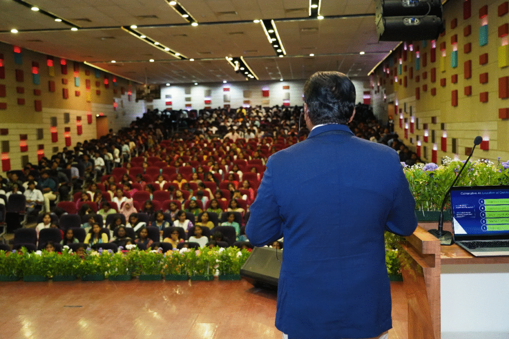 He also elaborated on advanced AI mechanisms such as Guardrails, Human Feedback Loops, and LLM-as-a-Judge, highlighting how these frameworks ensure responsible, accurate, and adaptive AI systems. His session encouraged students to think beyond traditional programming and focus on building intelligent, self-learning AI agents capable of solving real-world challenges in domains like healthcare, education, and agriculture — the core themes of the AI Ignite Hackathon.