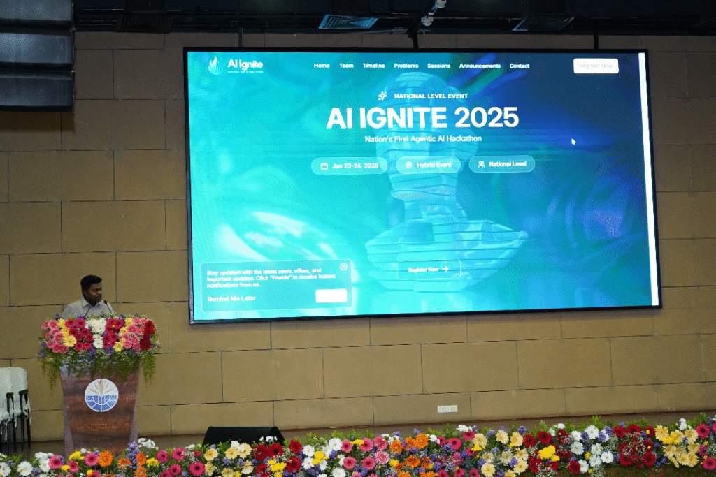 The highlight of the event was the official unveiling the AI Ignite logo, symbolizing innovation, intelligence, and the spirit of technological advancement. The logo represents the launch of India’s first agentic AI hackathon, marking the beginning of a nationwide initiative to inspire creativity and groundbreaking solutions in the field of Artificial Intelligence.