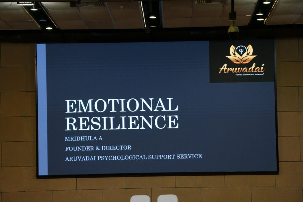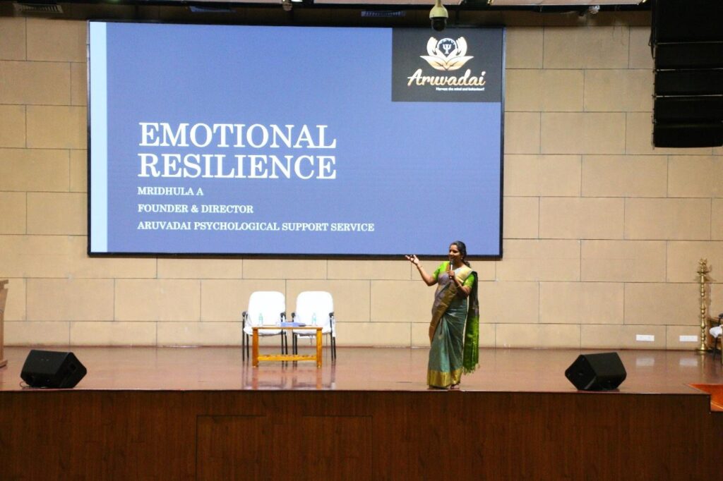 The key session of the programme was delivered by Ms. Mridhula A., Psychologist, who conducted an in-depth and highly engaging interaction on emotional resilience and mental well-being. The session focused on helping students understand their emotions, manage stress effectively, and develop resilience in both academic and personal life.