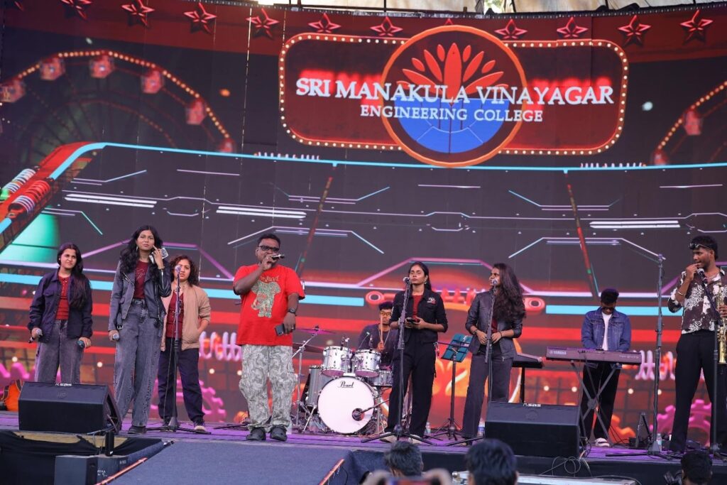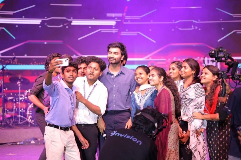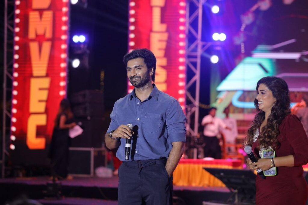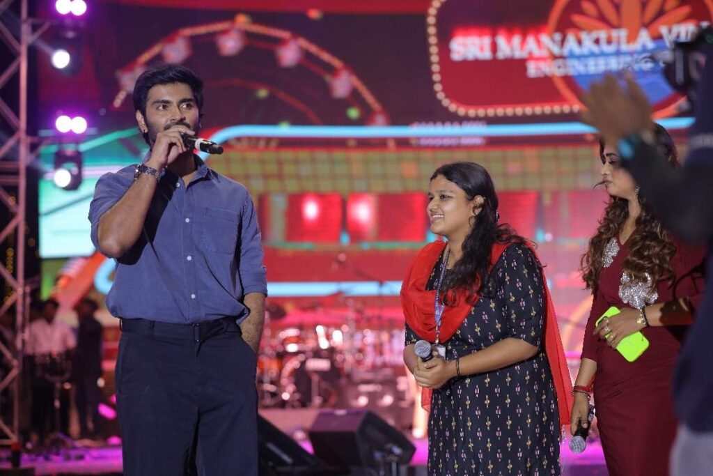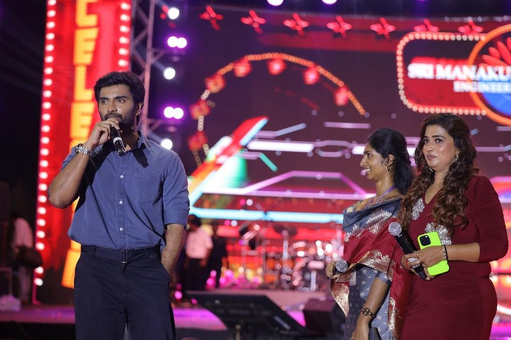 The evening took a cinematic turn as a special Movie Promotion segment brought Tollywood closer to campus. A thrilling engagement session with Sri Gowri Priya and Athirchi Arun, who interacted live with the student crowd.