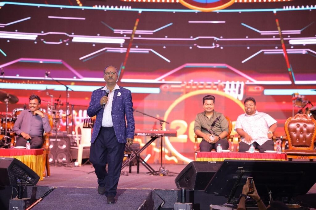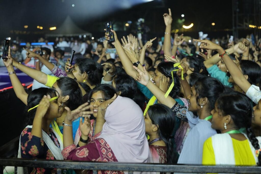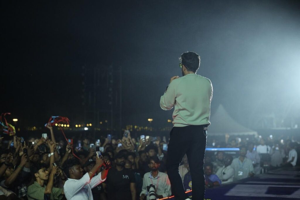 Then came the Grand Entry. With dramatic sound effects and a 10-minute production that rivalled a full concert opener, Singer Karthick took the stage in a moment that sent the crowd into a frenzy. Lights blazed, music soared, and the night officially transformed into something extraordinary.