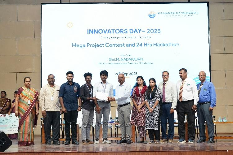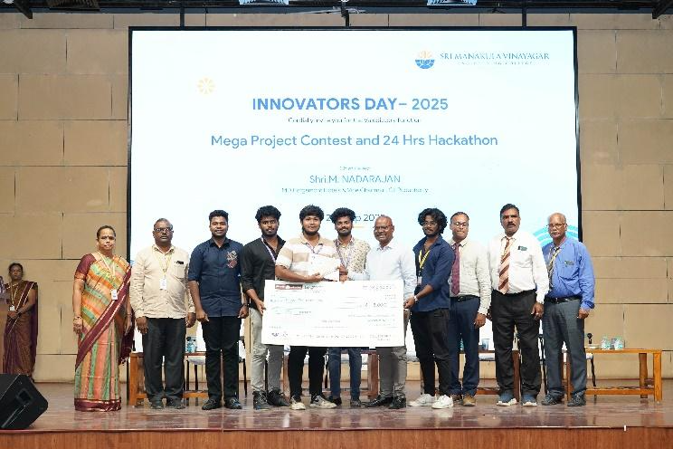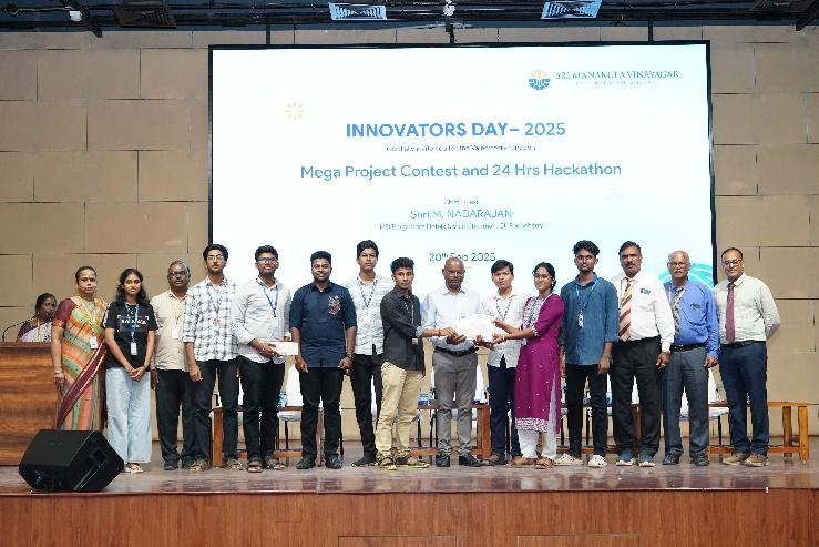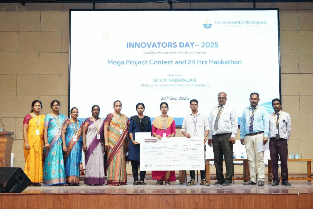 As part of Innovators Day 2025, Sri Manakula Vinayagar Engineering College hosted an intense 24 Hours Hackathon Challenge. The event pushed participants to work non-stop for a full day, turning their ideas into impactful solutions under time-bound pressure.