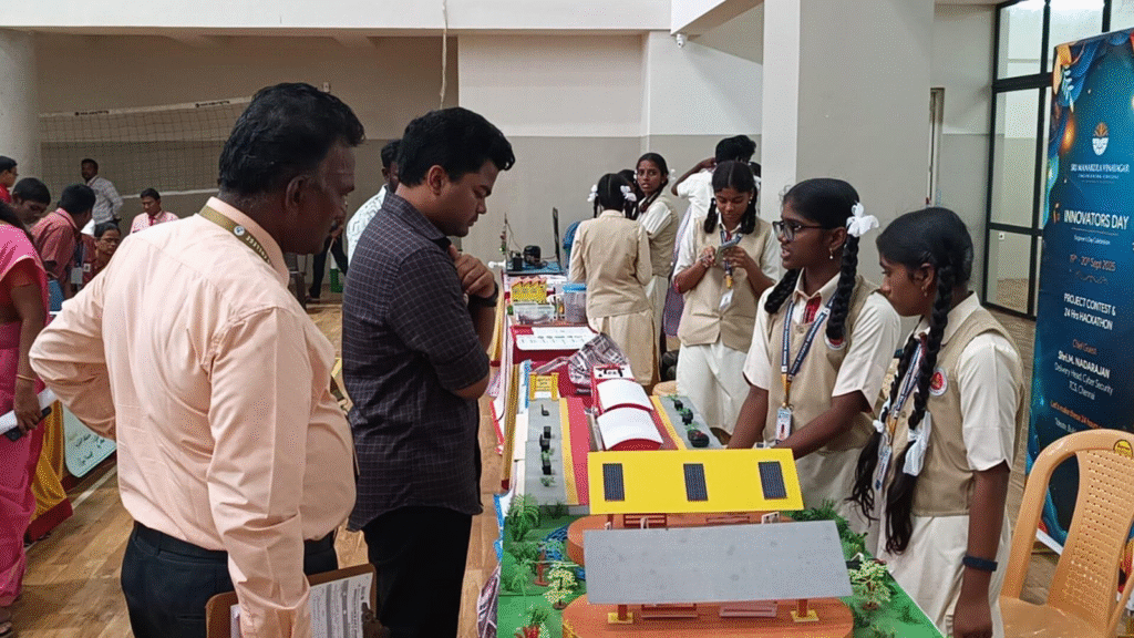 The first day of Innovators Day 2025 at Sri Manakula Vinayagar Engineering College began with the Mega Project Contest, an exciting platform for school and college students to showcase their creativity and problem-solving skills.