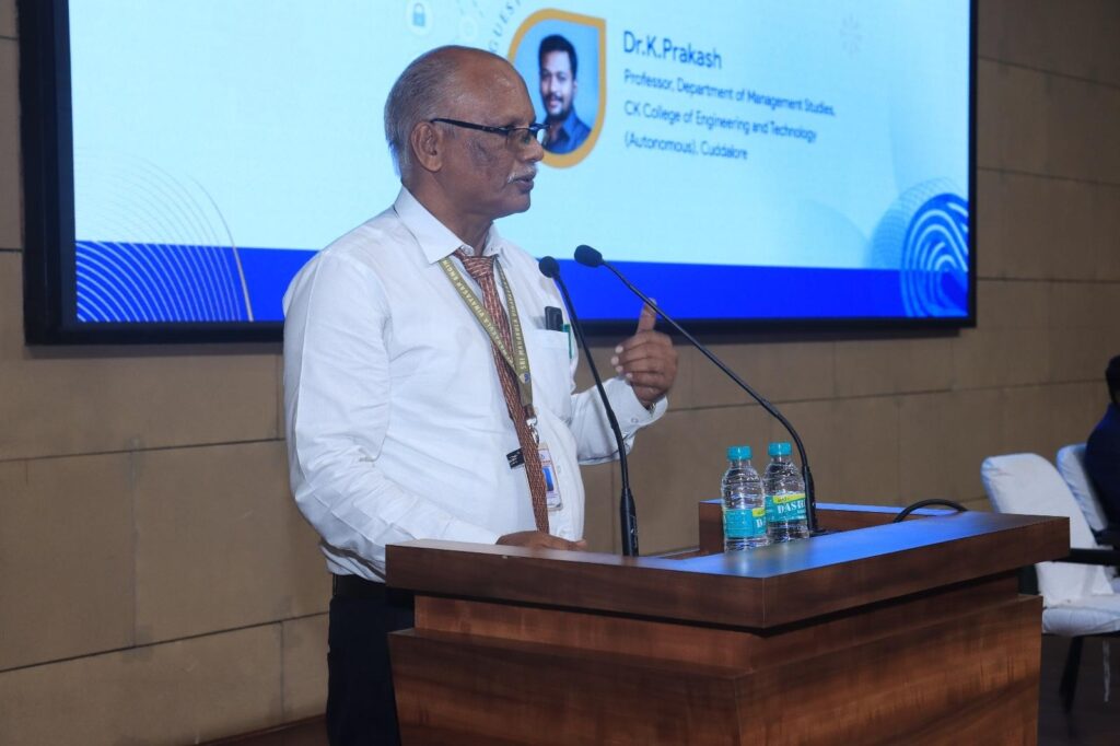 The keynote address was delivered by Dr. Prakash, Professor, Department of Management Studies, C.K. College of Engineering and Technology (Autonomous), Cuddalore. In his insightful speech, he elaborated on the connection between Sangam literature and sustainable development, stressing how ancient wisdom can guide modern society in achieving ecological balance and social responsibility. His address inspired students and faculty to adopt a holistic and culturally rooted approach toward sustainability.