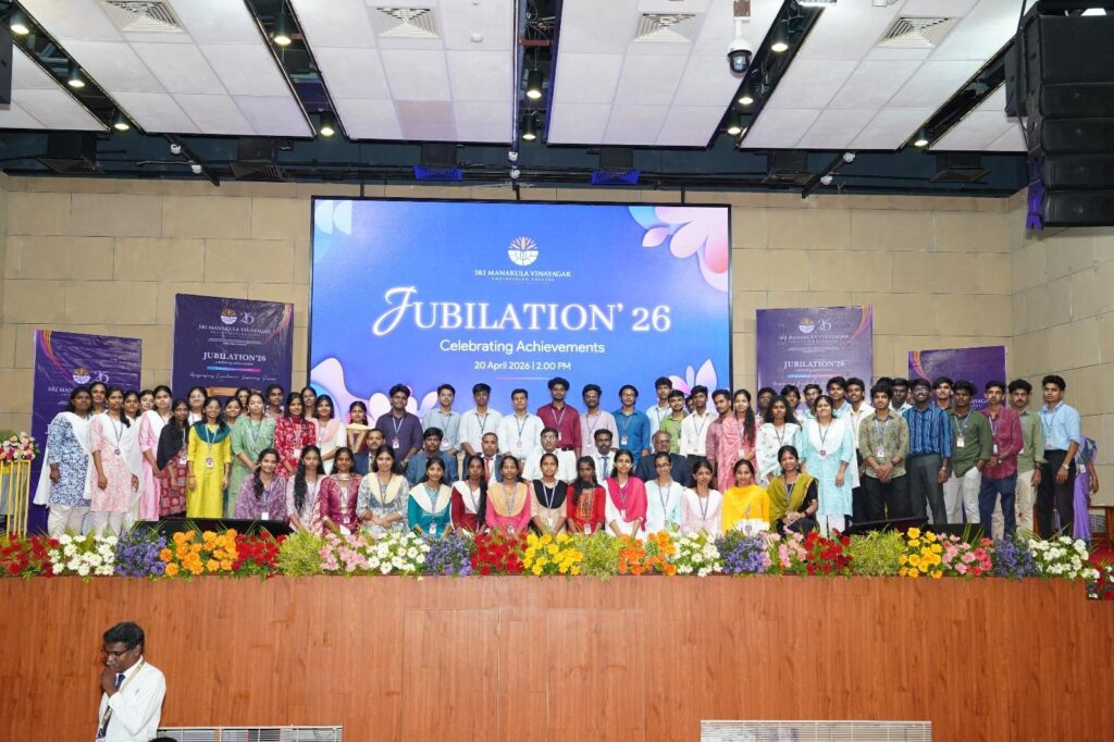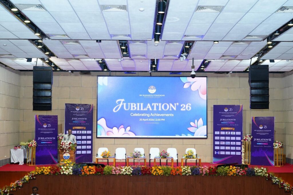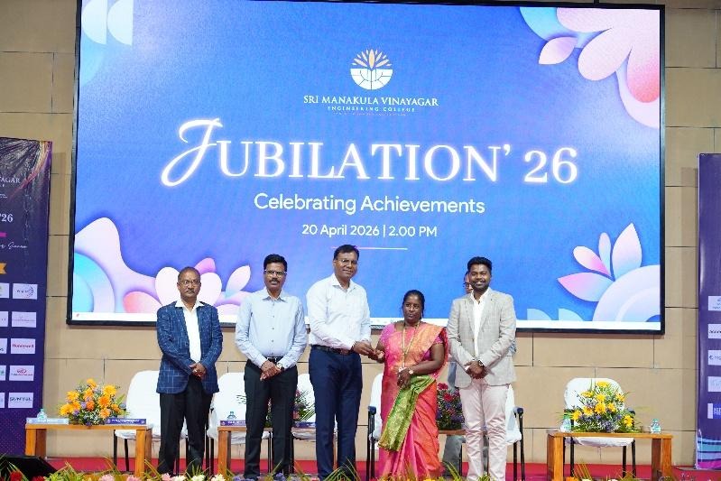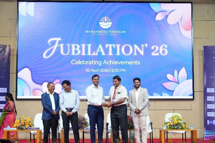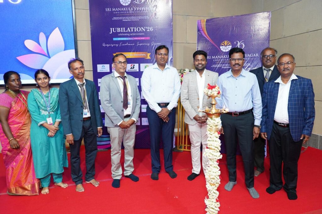 Jubilation ’26, organized by the Training and Placement Division at Sri Manakula Vinayagar Engineering College (SMVEC), was a grand celebration of student success and accomplishments. The event created a proud platform to recognize academic excellence and placement achievements. Students, faculty, and dignitaries gathered to mark this special occasion. The atmosphere reflected joy, pride, and motivation for future success. It truly highlighted the institution’s commitment to student growth.