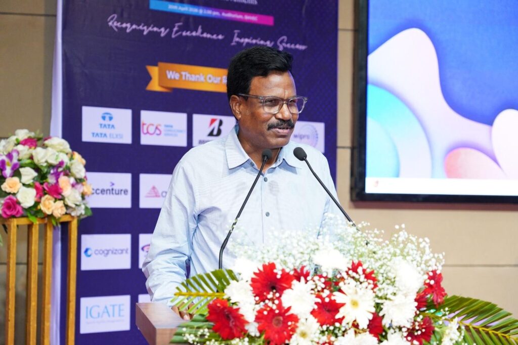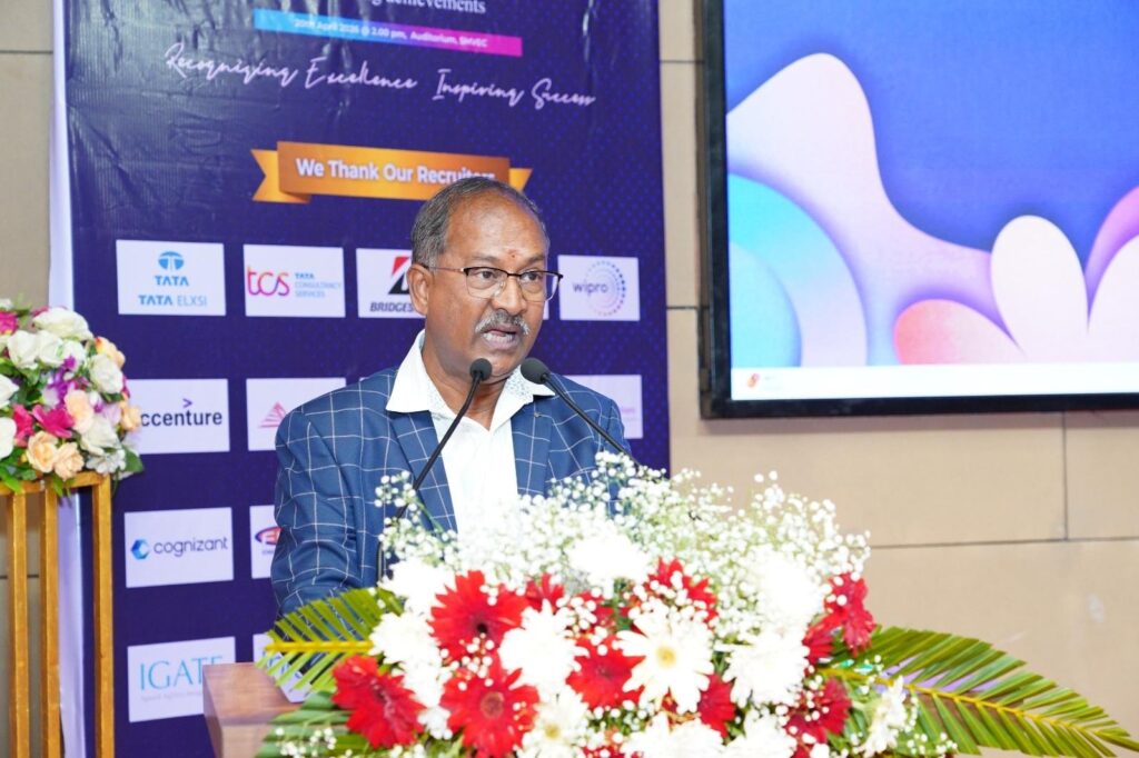 The Chief Guest Address was delivered by Shri Jude Richard, Chief Architect, TCS, Chennai, who congratulated the students on their achievements. He emphasized the importance of ownership, responsibility, and sincerity in every task. He encouraged students to set clear goals, continuously learn, and adapt to changing technologies. He also highlighted the need for self-assessment and making the right career choices. He concluded by advising students to stay grateful and committed to their professional growth.