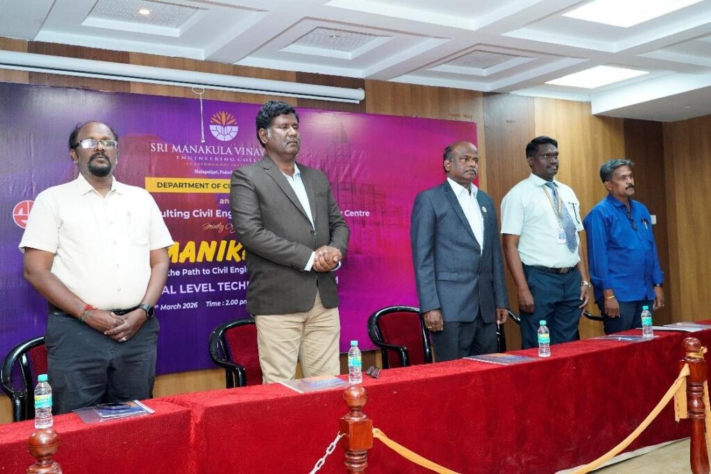 NIRMANIKA 2026, a National Level Technical Symposium, was successfully organized at Sri Manakula Vinayagar Engineering College (SMVEC), Puducherry, by the Department of Civil Engineering in association with the Association of Consulting Civil Engineers (India), Puducherry Centre. The symposium served as a dynamic platform for students, academicians, and industry professionals to share knowledge and explore emerging trends in civil engineering.