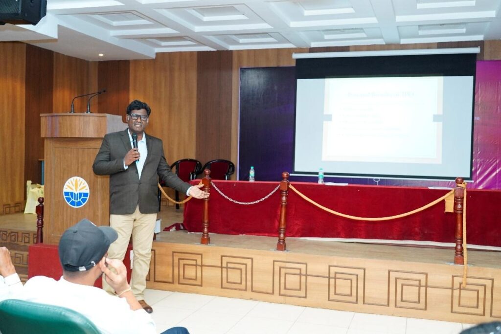 Technical Session I on “Smart Geosynthetics for Sustainable Ground Engineering” was delivered by Dr. P. T. Ravichandran, Professor and Head, SRM Institute of Science and Technology. The session provided valuable insights into the applications of Geosynthetics, soil stabilization techniques, and sustainable construction practices, enriching the participants with practical and industry-relevant knowledge.