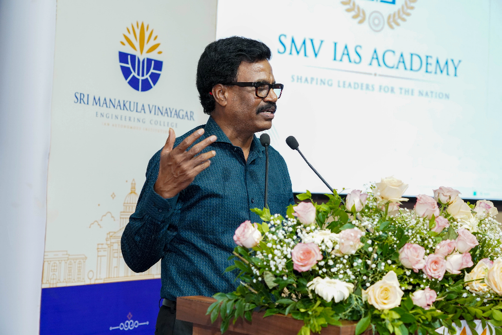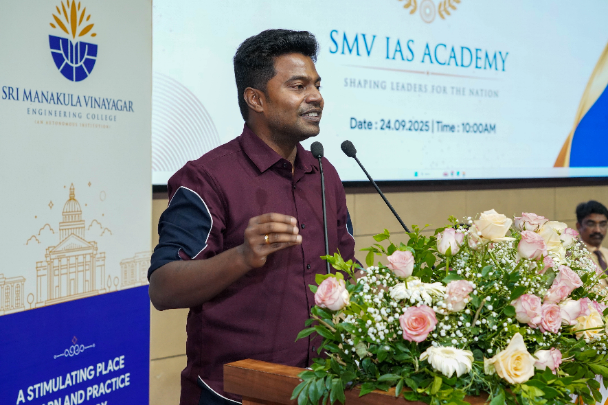 The Gratitude note was delivered by Dr. S. Muthulakshmi Dean,SMVEC School of Arts and Science In her not She Talked about the launch of the SMV IAS Academy on 24th September 2025 marked a significant milestone in SMVEC’s journey, coinciding meaningfully with the Chairman’s birthday and the institution’s Silver Jubilee year. The planning and collaboration behind the event—initiated through early discussions starting in July—reflected a shared vision to integrate UPSC coaching into the mainstream of higher education. Emphasizing structured training, mentorship by former civil servants, and holistic skill development, the initiative aims to transform students from diverse academic backgrounds into future civil servants. The occasion also served as a moment to appreciate the tireless efforts of faculty, administrative staff, and external collaborators, whose dedication laid the foundation for this purposeful venture. The energy, unity, and belief shared throughout the ceremony underscored the collective commitment to making SMV IAS Academy a beacon of excellence and opportunity.
