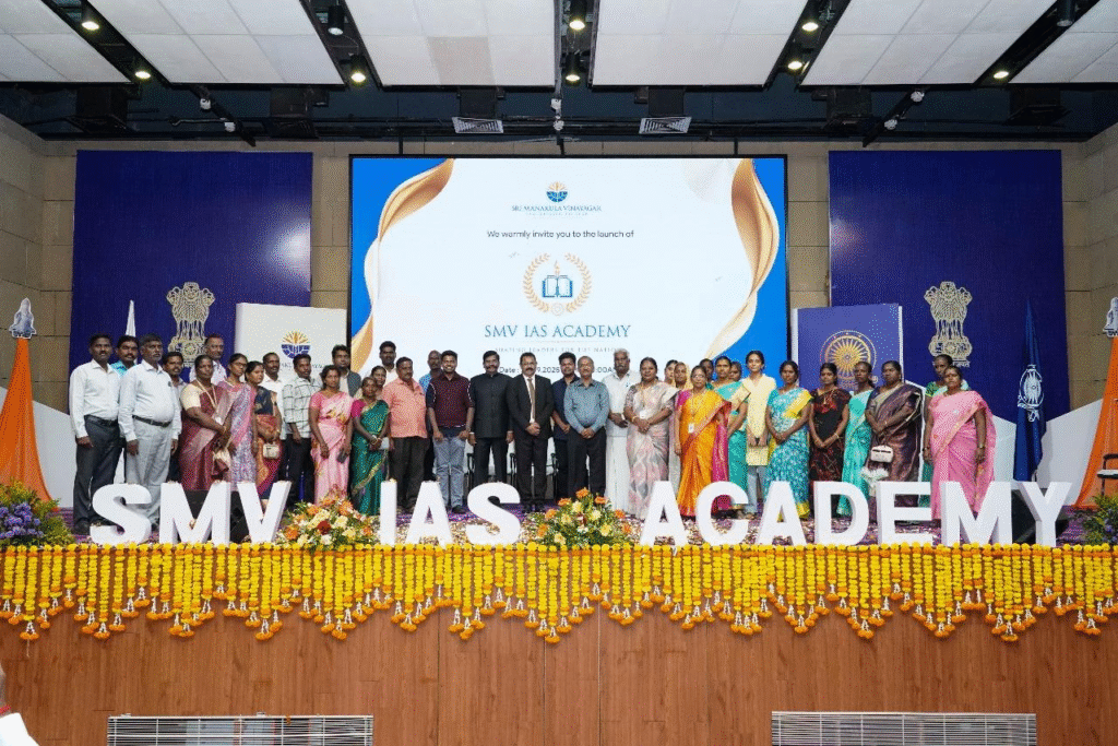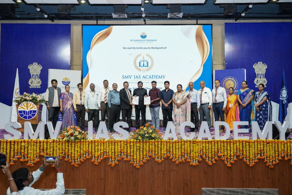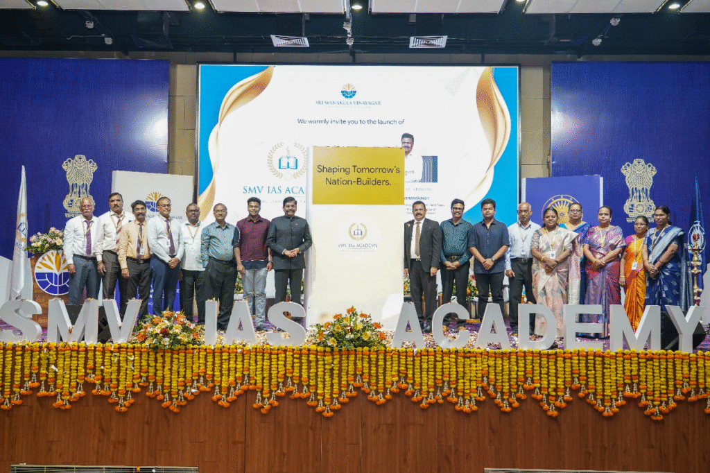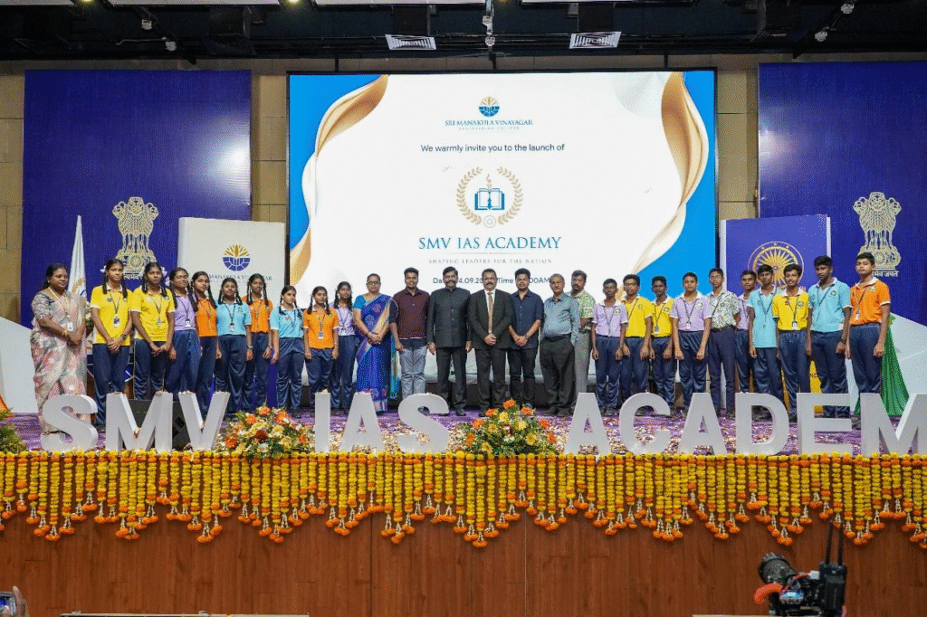 One of the key highlights of the SMV IAS Academy launch event was the formal signing of a Memorandum of Understanding (MoU) between SMV IAS Academy and the prestigious Kingmakers IAS Academy. This significant collaboration marks the beginning of a powerful partnership aimed at providing top-tier civil services coaching within the SMVEC campus.
