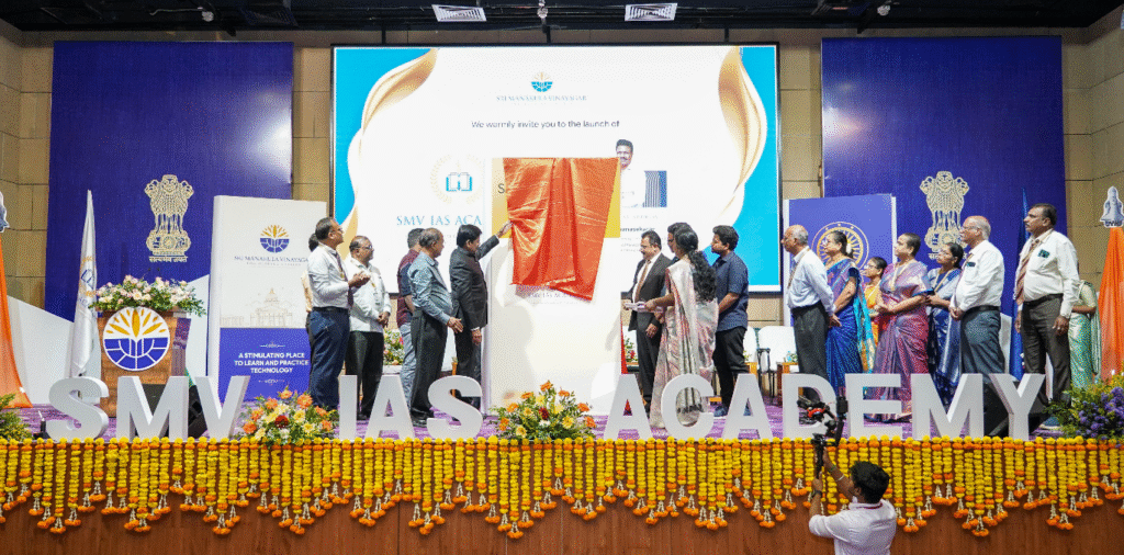 As part of the SMV IAS Academy launch event, an insightful audio-visual presentation captivated the audience, offering a comprehensive glimpse into the academy’s vision, values, and academic approach. Through dynamic visuals and compelling narration, the presentation highlighted the academy’s commitment to nurturing future civil servants with cutting-edge resources, expert faculty, and a supportive learning environment. This engaging segment not only informed but also inspired attendees, reinforcing the academy’s dedication to excellence and innovation in IAS preparation.