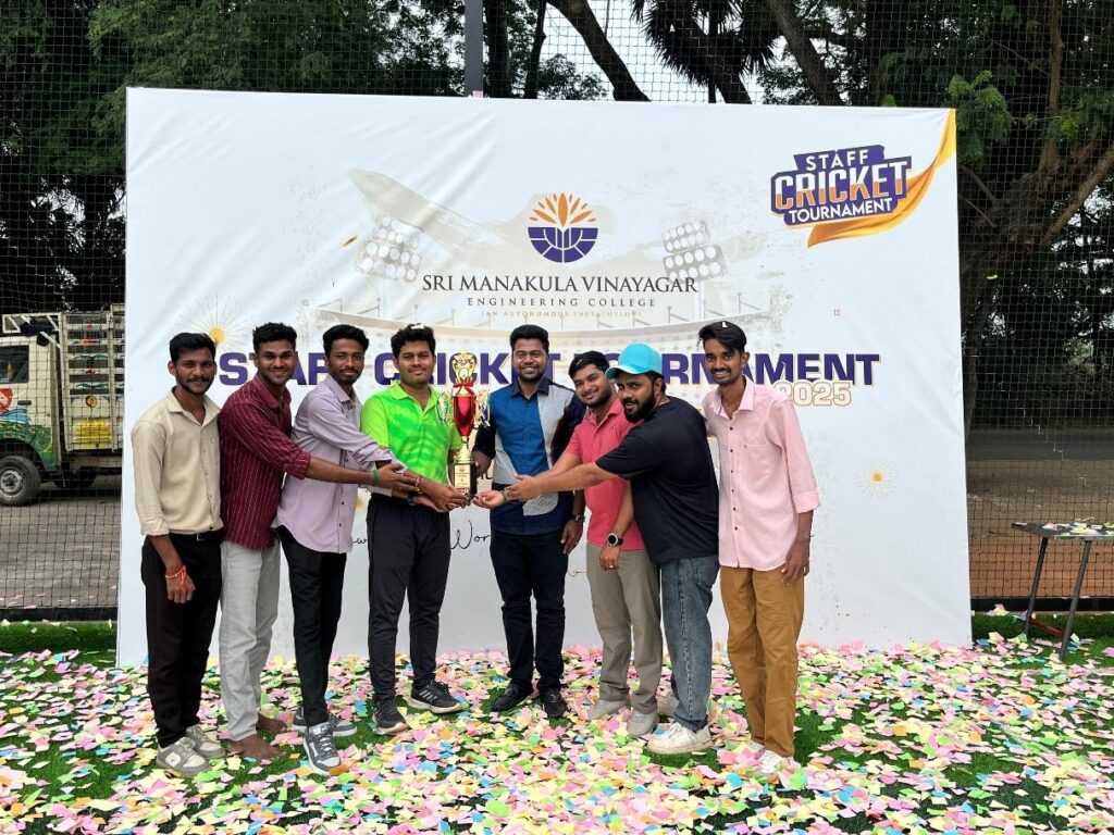 The Faculty Cricket Tournament, held on 15th December at the SMV Turf, concluded successfully with great enthusiasm and active participation from faculty members across various departments. The event became a lively platform for fostering camaraderie, sportsmanship, and team spirit beyond the academic environment.