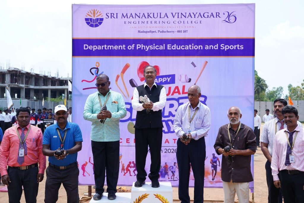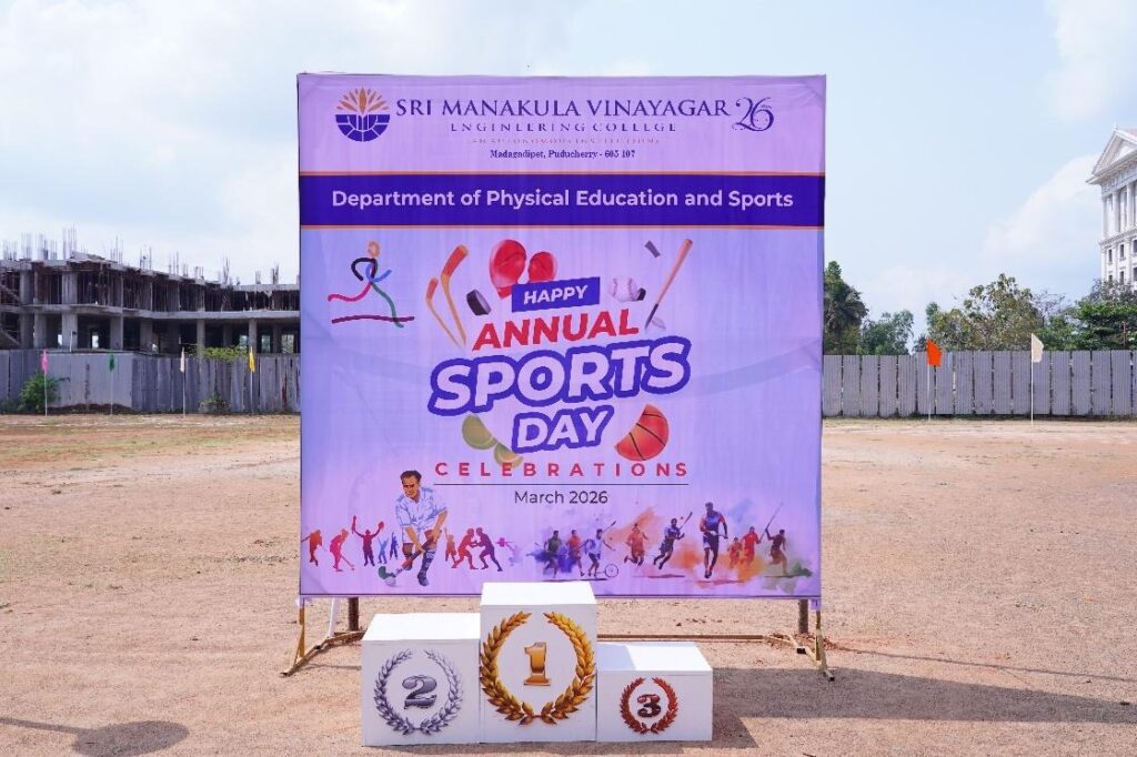 The Sports Day Celebration 2026 was conducted with great enthusiasm and vibrant participation on 30th March 2026at Sri Manakula Vinayagar Engineering College (SMVEC), bringing together students, faculty, and guests to celebrate the spirit of sportsmanship, unity, and excellence.