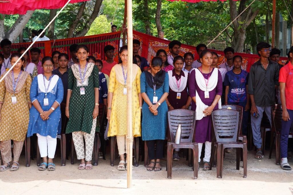 The program continued with the rendition of Thamizh Thaai Vaazhthu, invoking cultural pride and setting a traditional tone for the event, followed by the College Anthem sung with Great Spirit, reflecting the unity and values of the institution.