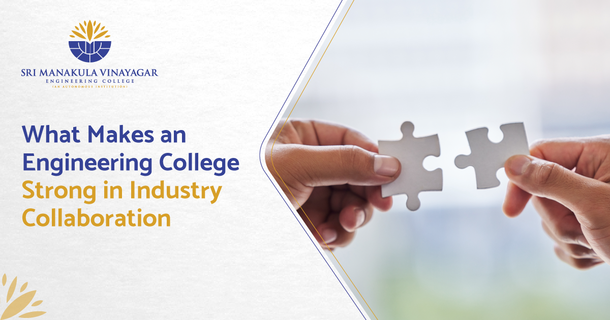 Understanding what makes a college strong in industry collaboration reveals why such institutions consistently produce confident, capable engineers. The combination of curriculum relevance and faculty expertise, together with hands-on exposure and research integration, creates the skills required for industry-ready graduates. The academic partnership between SMVEC and industry organisations demonstrates that student learning outcomes improve when university academic programs establish collaborative links with business partners. The essential requirement for engineering students is to choose a college which provides them access to active business partnerships, which have become essential for their professional development.